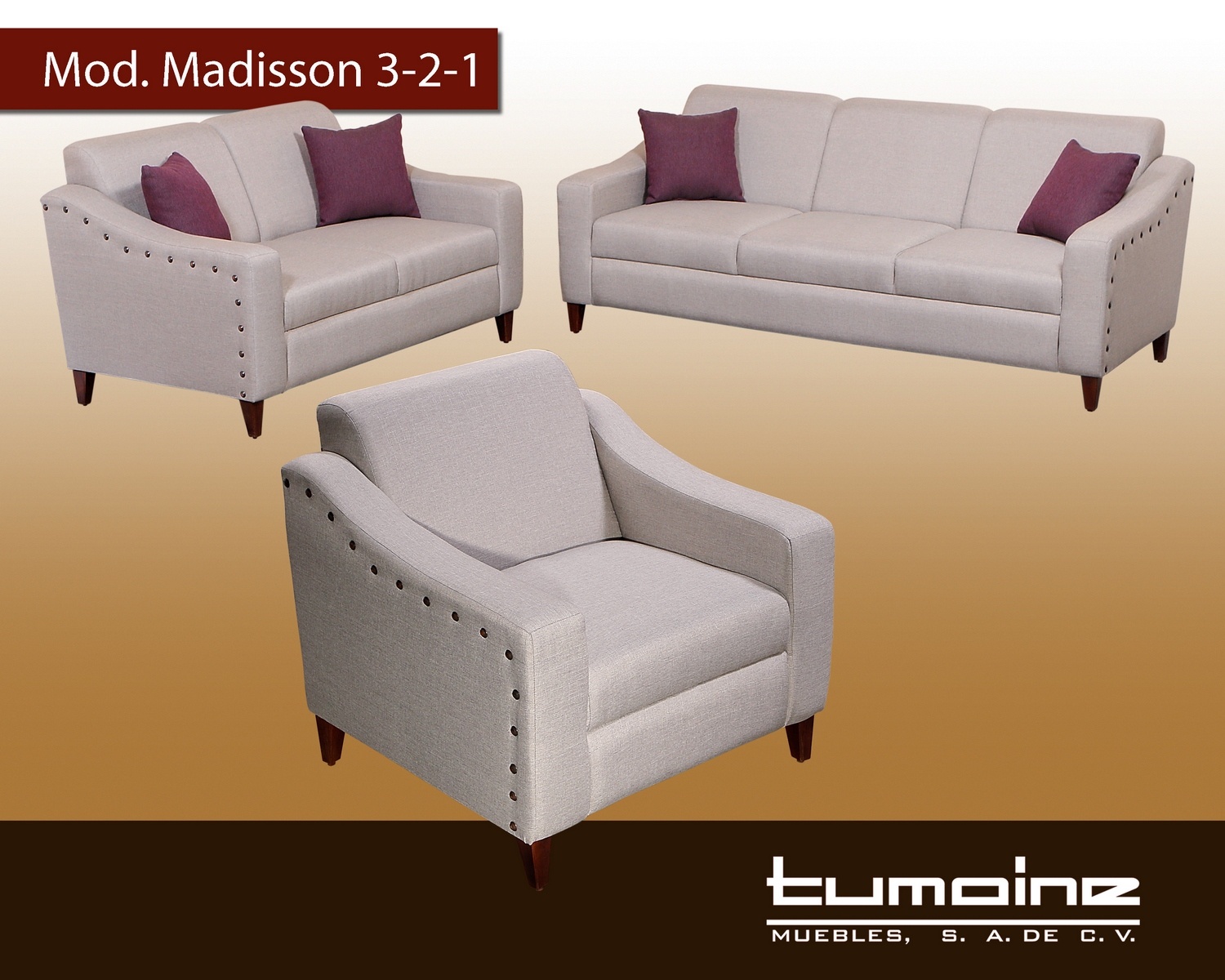 Moderna sala en 3 piezas, con muchos detalles en las costuras. Disponible por pieza suelta. *Disponible en otros colores. Contáctanos